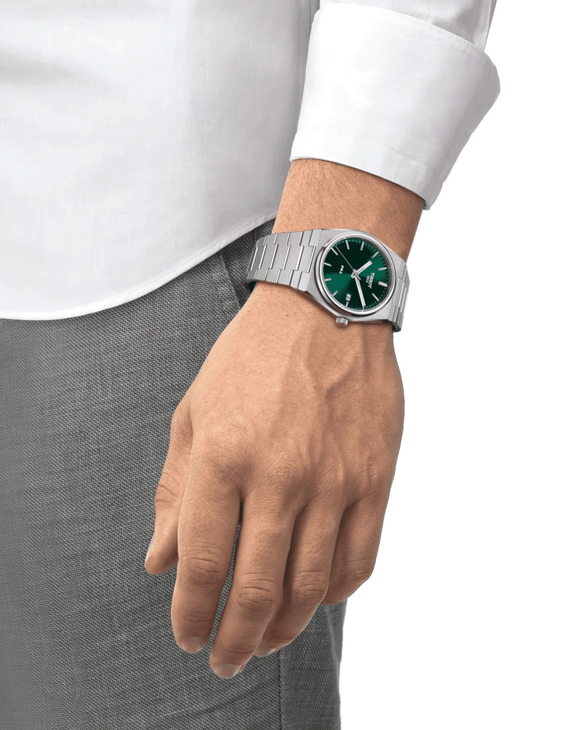 Whether you're a nostalgic seventies collector or a watch enthusiast looking for a trendy timepiece, the Tissot PRX Quartz sunray green dial is the perfect choice. Its bold look and timeless design make it a watch for every occasion, from the office to a night out with friends. By reinterpreting the icon of the 70s, Tissot has captured the vibrant, carefree energy of that era, while offering a stylish and versatile watch for younger generations looking for a distinctive, trendy timepiece.
