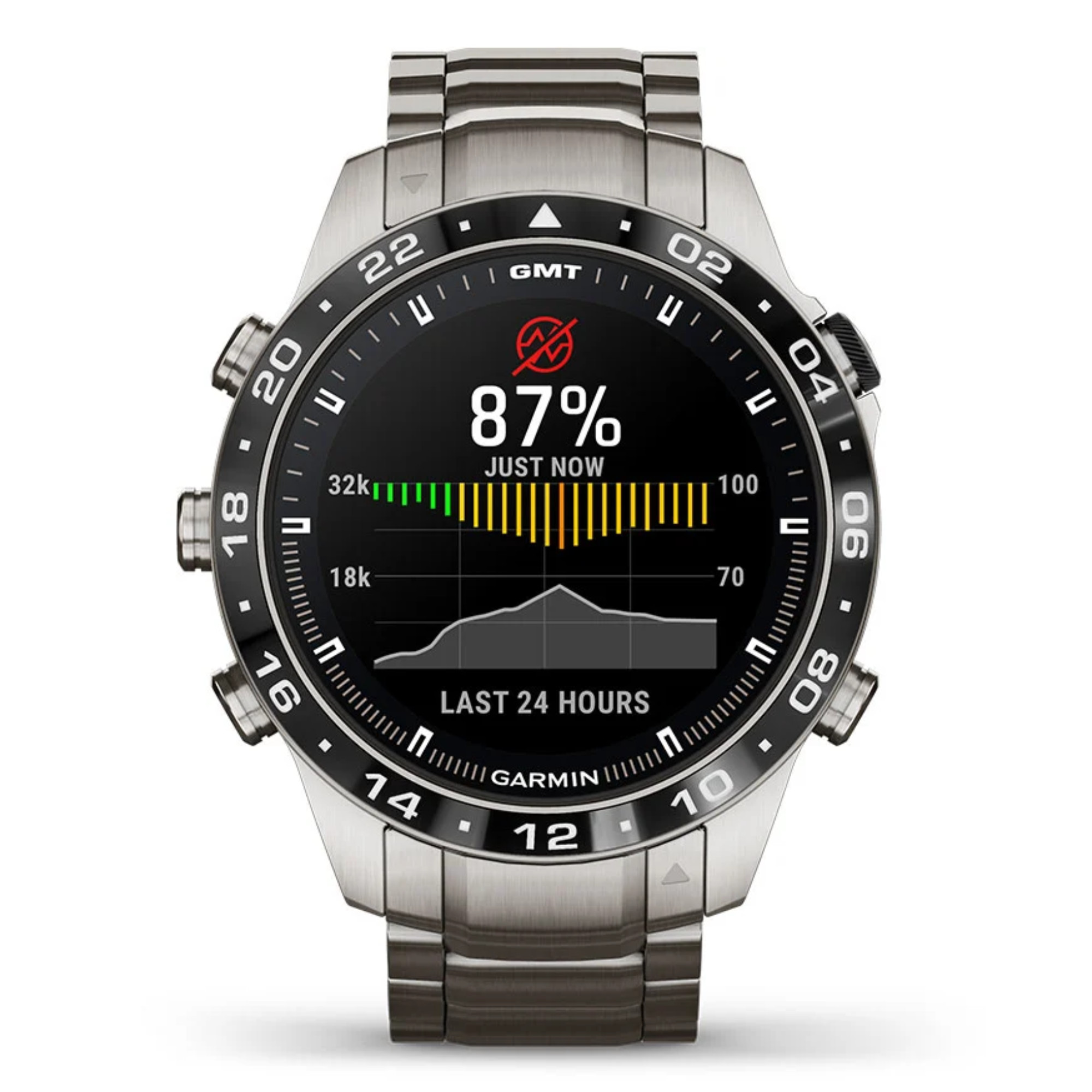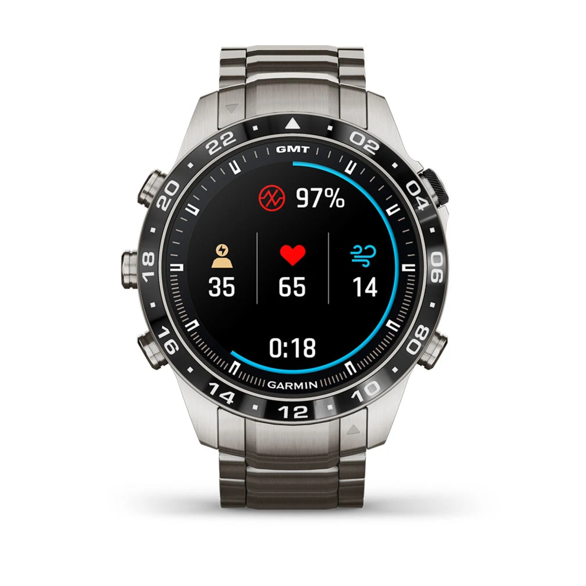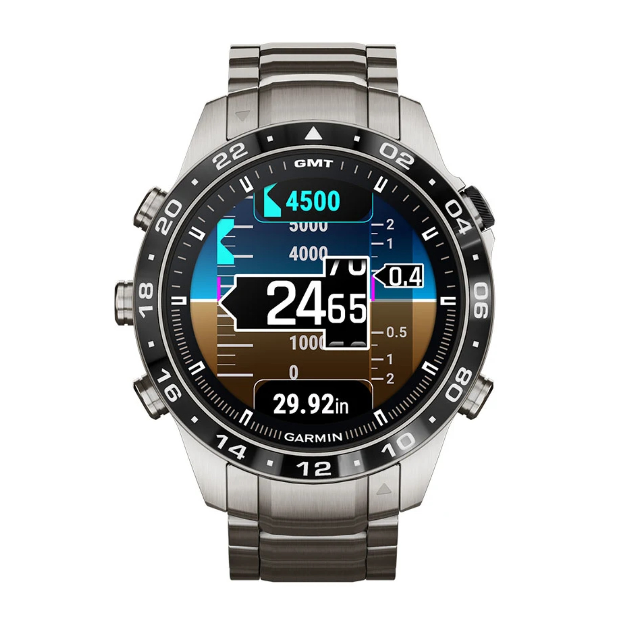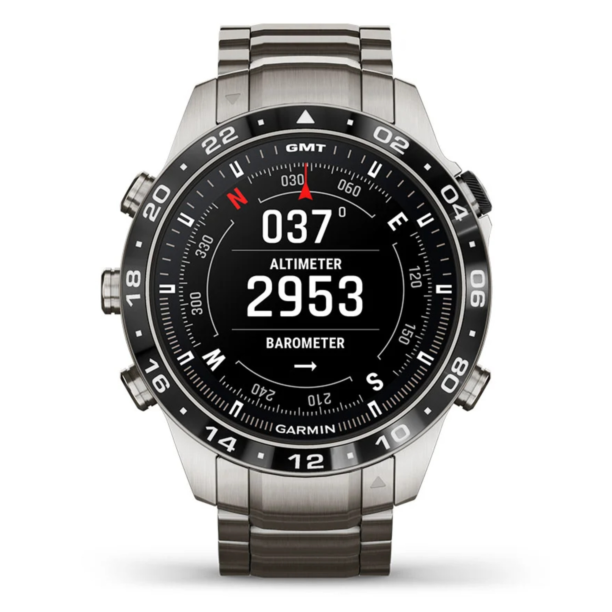 Garmin presents its brand new Marq Gen 2! A big step forward in terms of technology has been made in this Aviator model with the switch from titanium 2 to titanium 5 and the 1.2" AMOLED screen. The watch comes with a titanium bracelet and an additional black silicone strap.