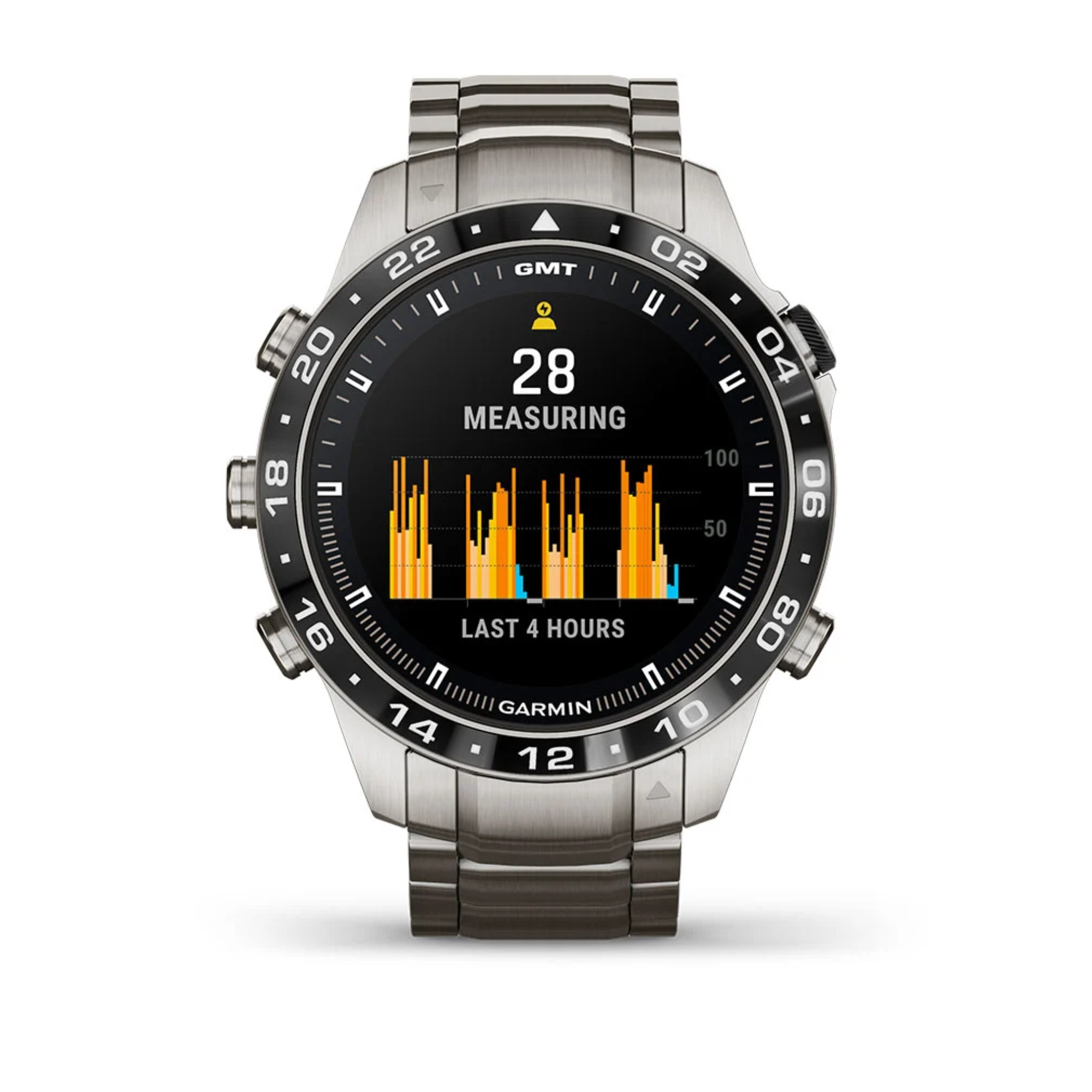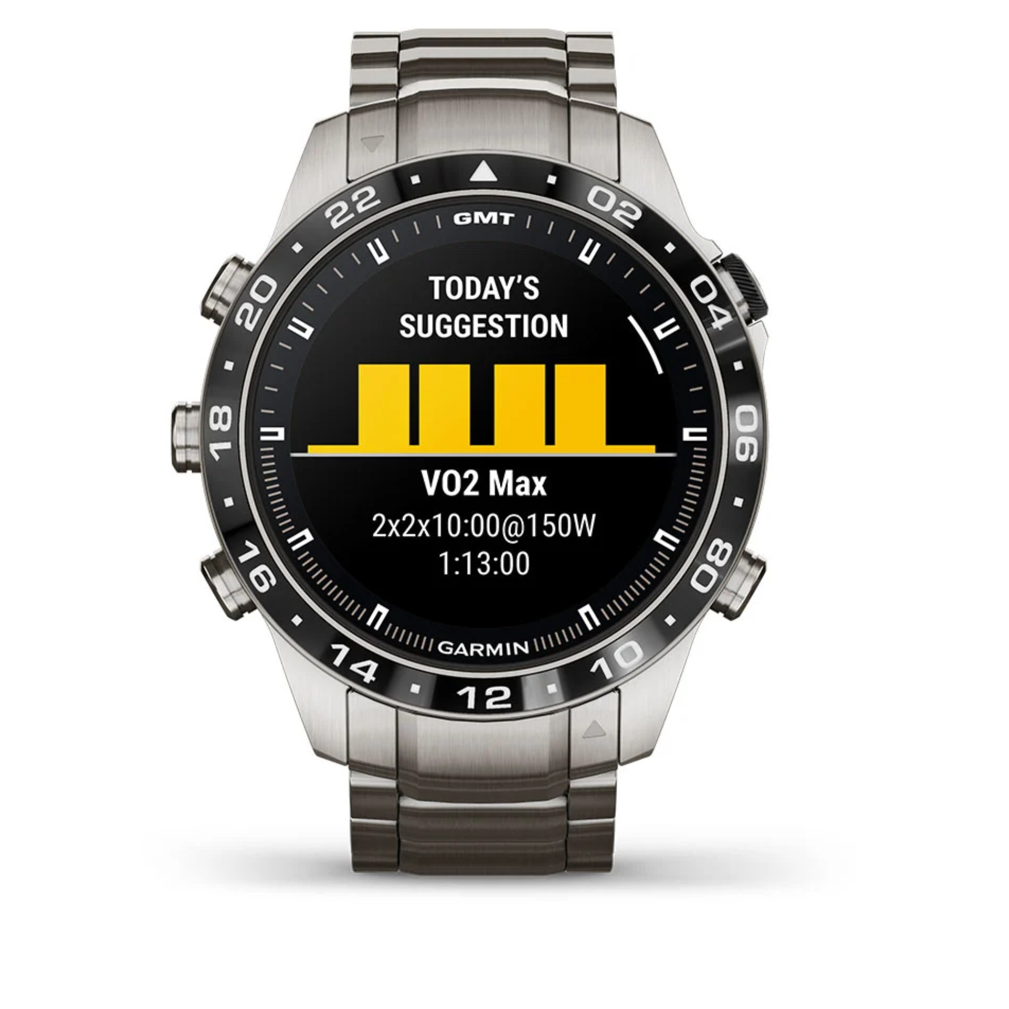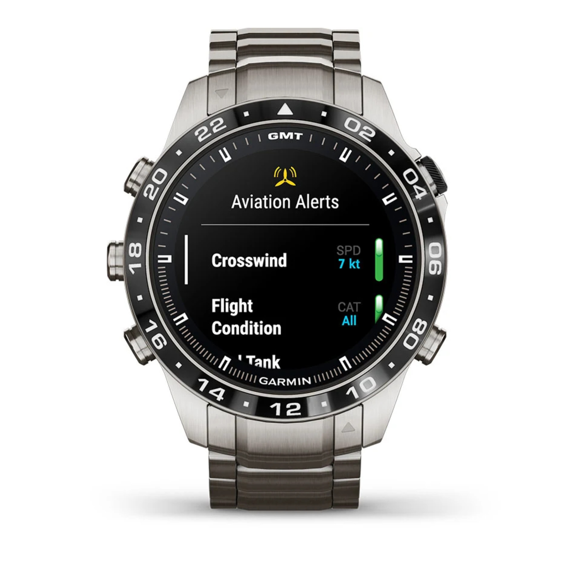 Garmin presents its brand new Marq Gen 2! A big step forward in terms of technology has been made in this Aviator model with the switch from titanium 2 to titanium 5 and the 1.2" AMOLED screen. The watch comes with a titanium bracelet and an additional black silicone strap.