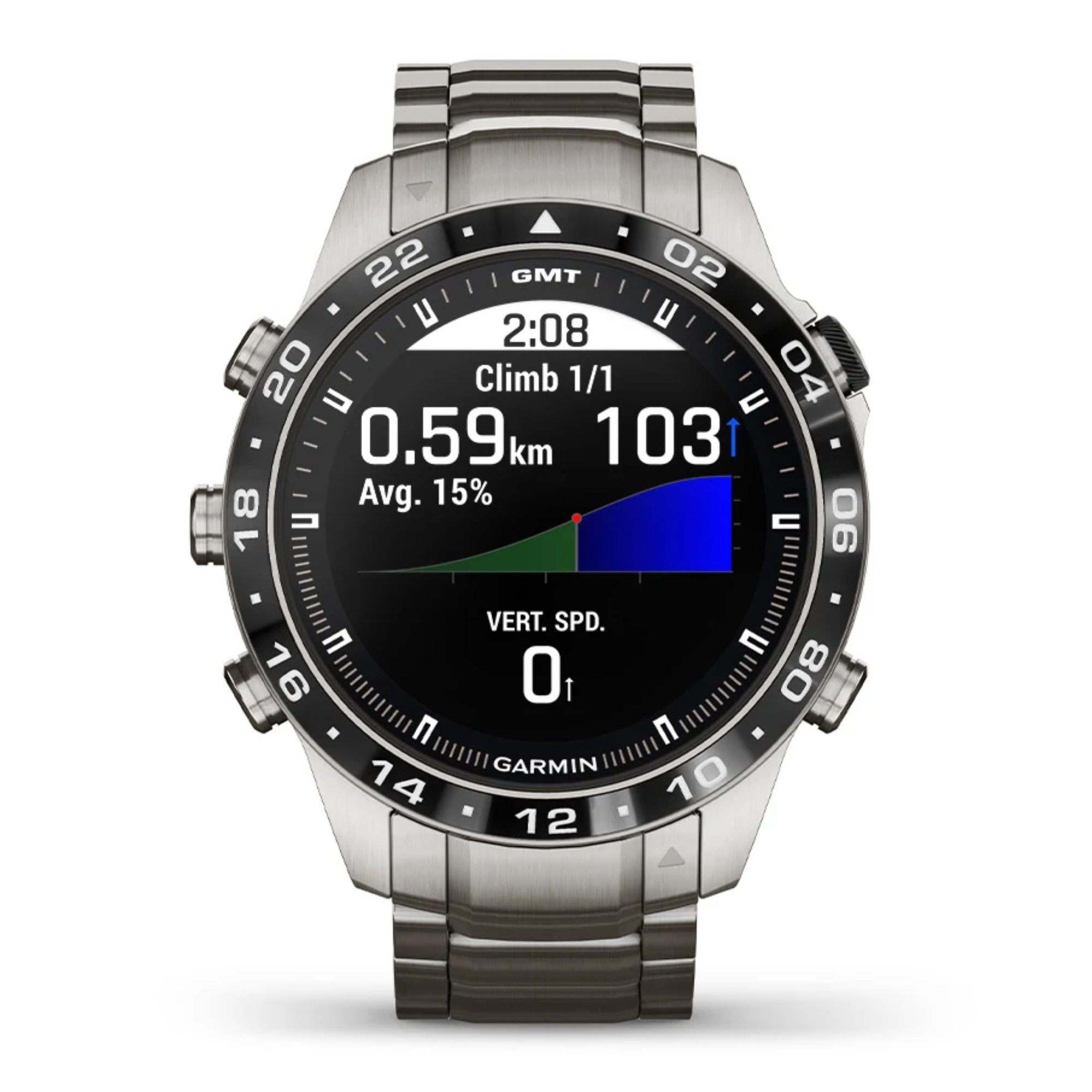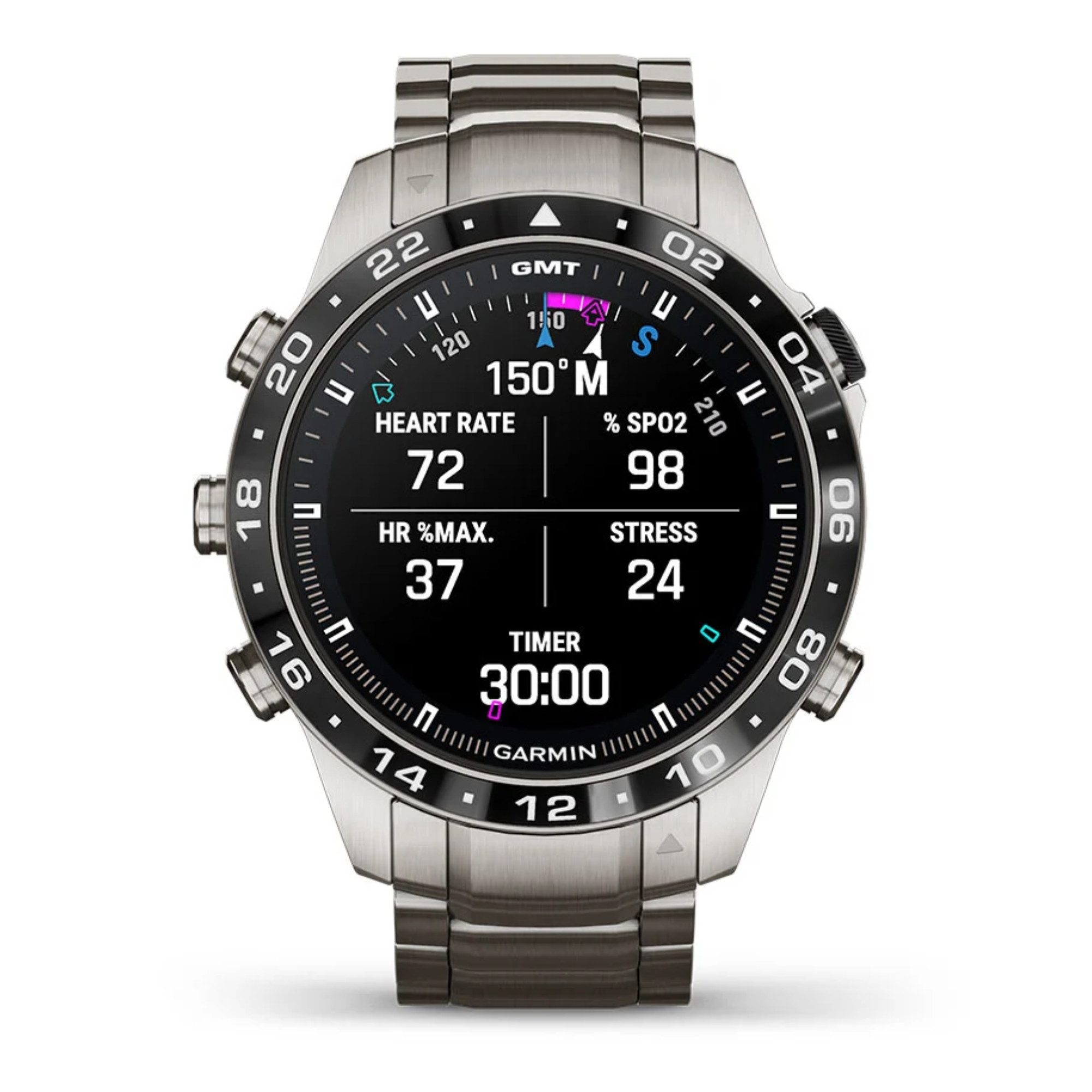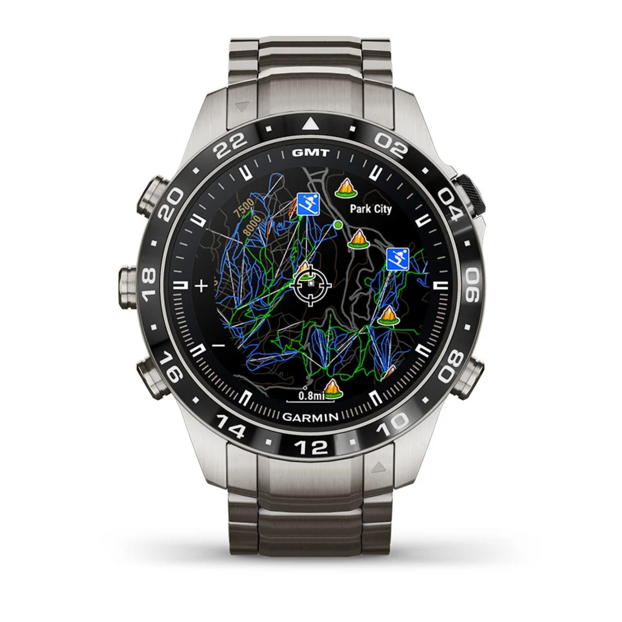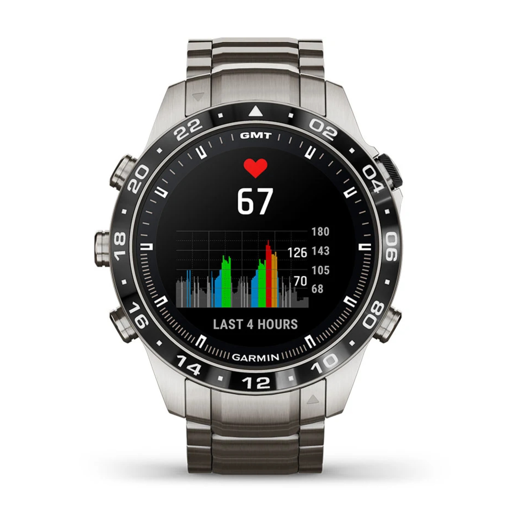 Garmin presents its brand new Marq Gen 2! A big step forward in terms of technology has been made in this Aviator model with the switch from titanium 2 to titanium 5 and the 1.2" AMOLED screen. The watch comes with a titanium bracelet and an additional black silicone strap.