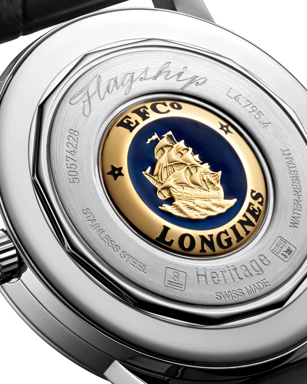 Au cœur de la Flagship Heritage se trouve le calibre L615, un mouvement automatique fiable et précis qui garantit une réserve de marche de 50 heures. Ce calibre est visible à travers le fond transparent du boîtier, offrant une vue fascinante sur le mécanisme. Certifiée chronomètre par les standards de Longines, cette montre allie performance et élégance. La Flagship Heritage est non seulement une pièce de collection, mais aussi une montre conçue pour durer et accompagner son propriétaire dans toutes les circonstances.