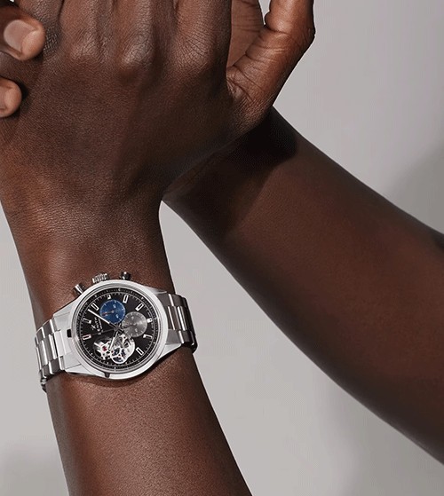 La DEFY Skyline Chronograph Skeleton allie design moderne et haute performance avec son cadran squeletté révélant le mouvement. Son boîtier en acier inoxydable et sa lunette à cinq branches lui confèrent une esthétique sportive et audacieuse.